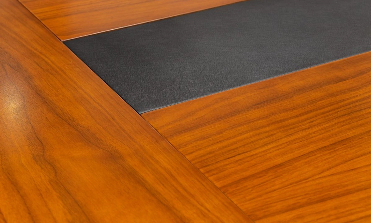 По рекомендации менеджера, работающего над проектом, заказчик обратил внимание на коллекцию Kingston. Мебель из этой коллекции удачно сочетает в себе классический, но не вычурный стиль, отличный конструктив, качественные материалы и демократичную для премиум-класса цену. Дорогая фурнитура, шпон, кожаные накладки на столешницах выгодно отличают её от конкурентов.